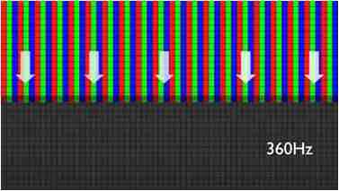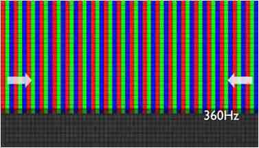 传统液晶驱动是从左到右单向进行,,在画面更新速度愈来越愈快的情况下,,位于驱动线路末端的右下角区域,,,,画素的闸极来不及在短时间内获得足够电压,,,无法显示出正确的颜色资讯。。。