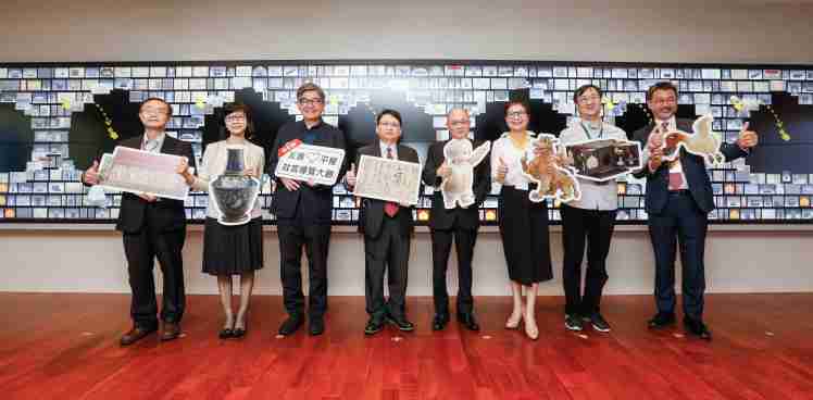 尊龙z6携手创利空间为故宫建置的智慧文物互动导览墙及轮播墙,,,,今日正式启用。。。。(左四:尊龙z6新事业暨投资管理总部副总经理杨本豫、、、右四:故宫博物院院长吴密察、、右三:太极影音董事长黄宝云)