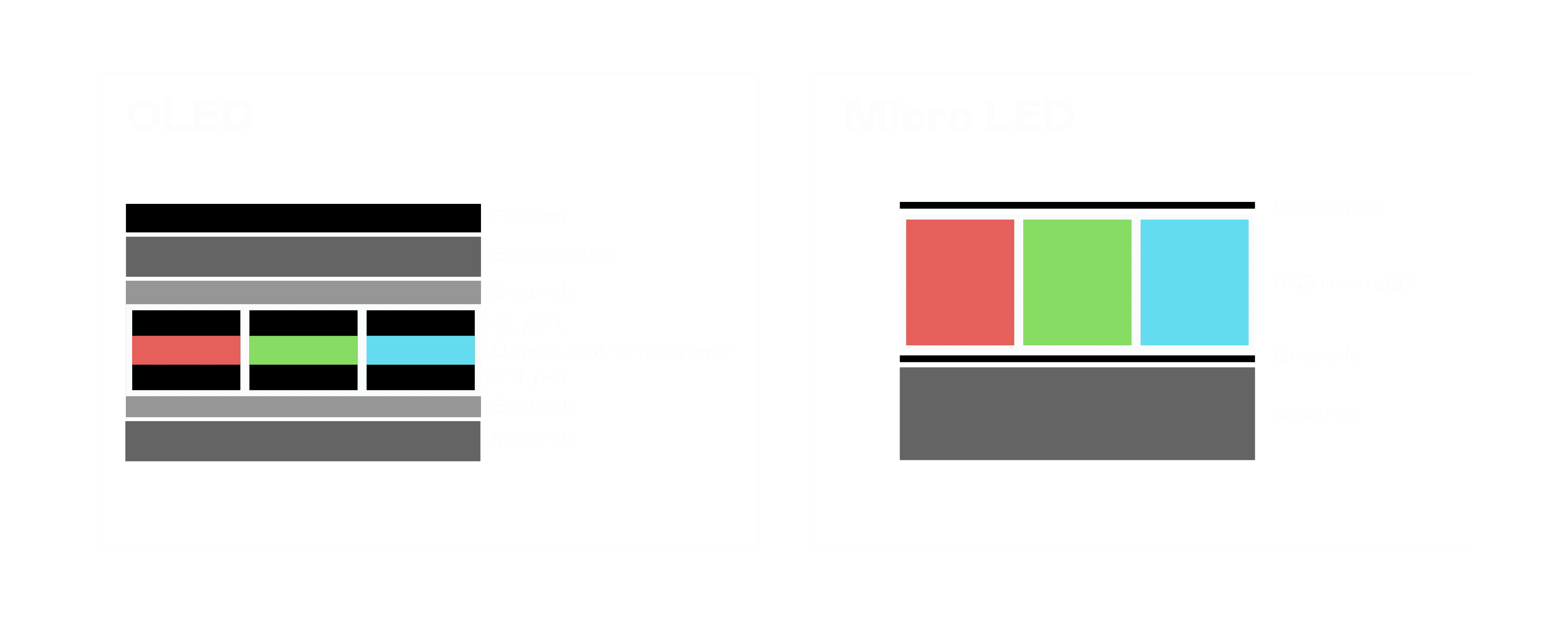 以 LED 做为显示画素,,可让 LED 的发光效率发挥到极致,,从而让显示器具备优异的亮度表现,,,,不论是在户外或室内,,,均具备出众的显示效果。。。同时,,,,与使用有机材料的 OLED 相比,,LED 具备更稳定、、、寿命更长的特性,,,不仅不会有画面烙印问题,,,,而且更不容易出现故障、、、坏点。。。